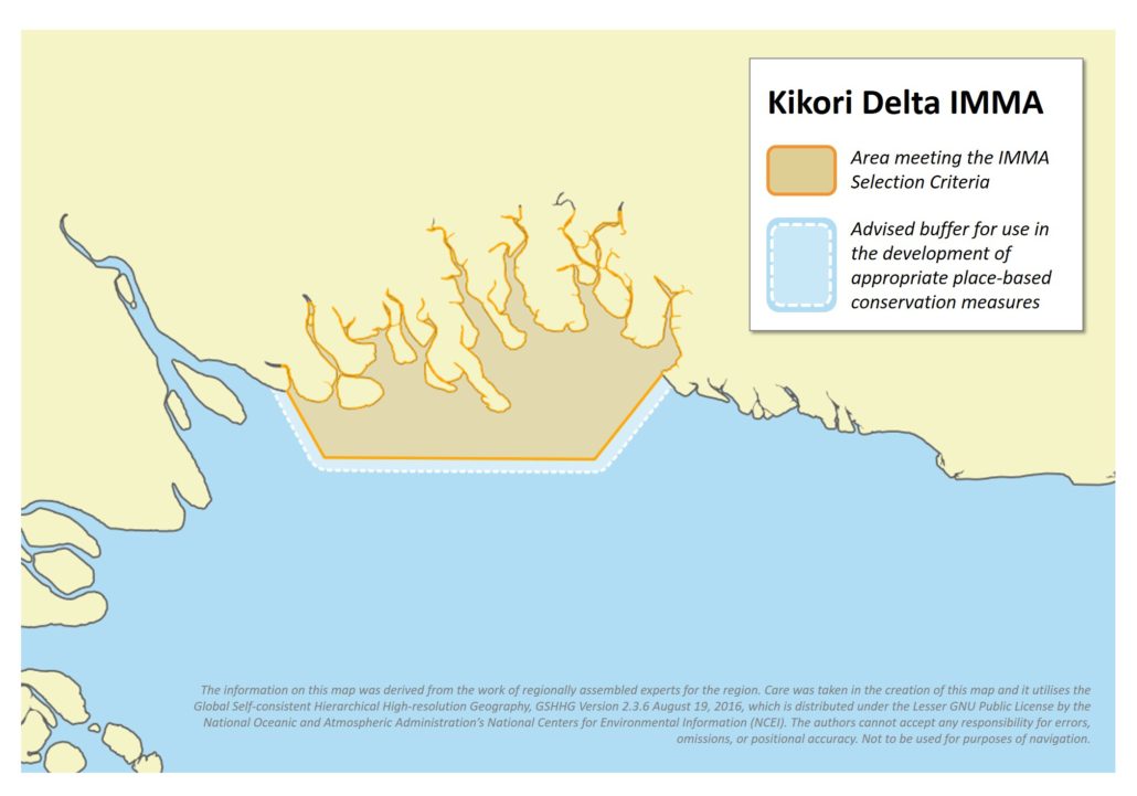 The Kikori Delta IMMA is located in the Gulf Province of Southern Papua New Guinea. It is recognised as one of the most important areas of forest and wetland/riverine biodiversity in the Asia/Pacific region and has been nominated as a UNESCO World Heritage Site because of its cultural and biodiversity value. There are small, resident populations of two inshore dolphin species (Australian snubfin – Orcaella heinsohnii, and Australian humpback dolphins – Sousa sahulensis) within the IMMA. The boundary selection of the Kikori Delta IMMA is based on the core area of resident dolphin sightings obtained during four comprehensive surveys in the region since 1999. Surveys also recorded the Indo-Pacific bottlenose dolphin (Tursiops aduncus) and the dugong (Dugong dugon) in the Delta region.