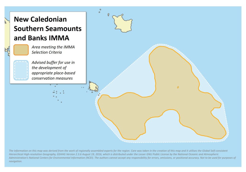 The Southern Seamounts and Banks of New Caledonia IMMA includes some of the primary reproductive areas of the breeding sub-stock of humpback whales (Megaptera novaeangliae) designated by IWC as E2 and considered as endangered by IUCN. Whales specifically concentrate around these offshore shallow structures where they come for breeding and nursing during austral winter. High densities have been recorded in the vicinity of the seamounts, especially near Torche bank, Orme bank, and Antigonia seamount. Both residence time and behaviour suggest the seamounts are critical habitat for this endangered population.